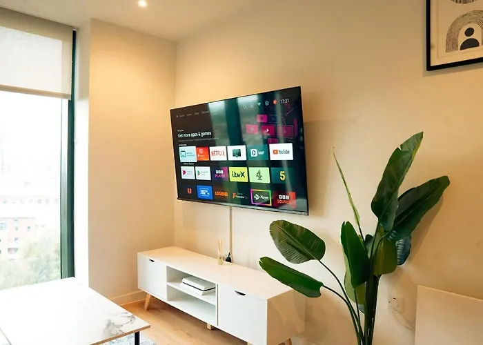 El Luxury Sky Suites 2 Bedroom 2 Bathroom City Centre Apartment Mánchester, situado a 4 km de Club de golf Blackley, ofrece Wi-Fi tanto para estancias de negocios como de ocio. El Centro de conferencias de Mánchester está a 25 minutos a pie de este apartamento, mientras que la estación de autobuses Peter Street/Mount Street está no muy lejos de la propiedad.
